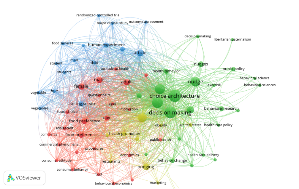 In Figures 1 and 2, it is evident how nudge research has evolved in different disciplines, and how the concept has been changing or relating to others over the years, adding that there is an evolution in research. First, there is a focus on decision architecture; second, it shifts to decision making; finally, there is more specificity such as: diets, food preferences, health promotion, consumer attitudes, among others. Concerning Figure 3, it can be evidenced among countries that do research in several areas about the use of the nudge tool.