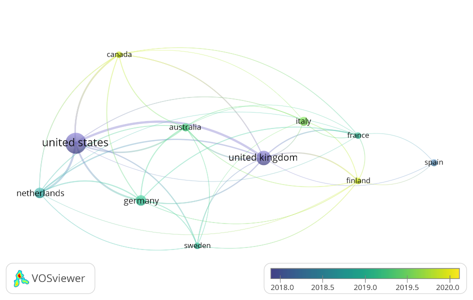 Likewise, it is proven in the density figures, the countries that are dedicated to nudge research in more specialized terms, showing the United States as the country that has been most dedicated to it, something that is not surprising because the advocators of the proposals are researchers from that country, but what is relevant is the influence in European countries (Figure 3). Finally, it is evident that Latin American countries are absent, since their participation in researchers on decision-making based on the concept of nudge is limited, adding that this happens because their publications are not stored in specialized and world-class databases.