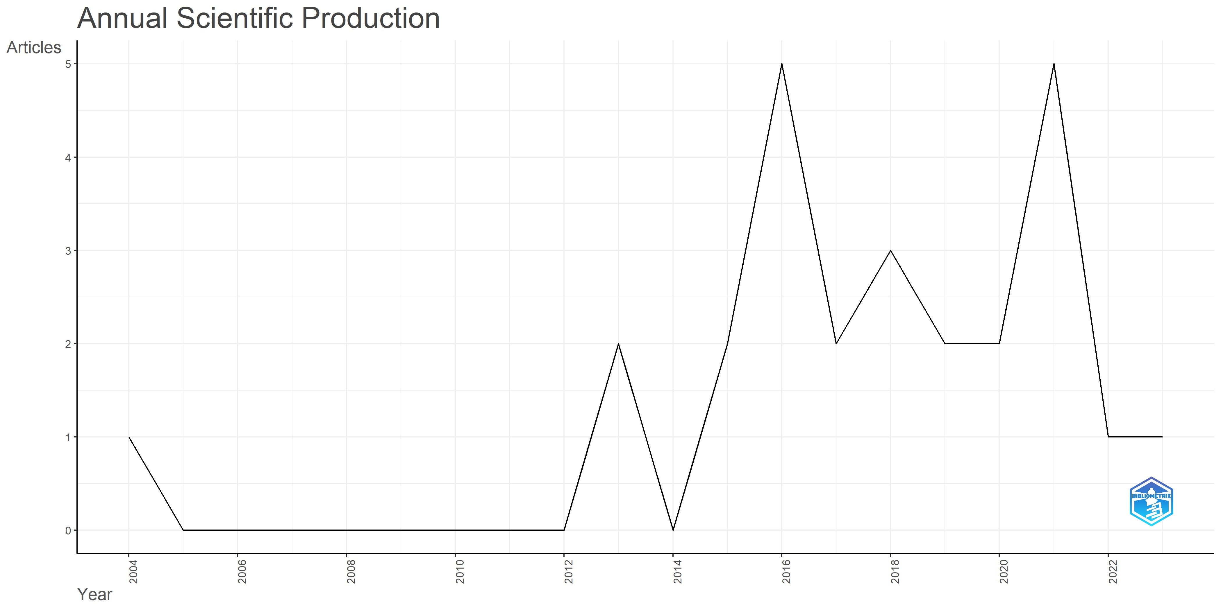Time Period Sources (Journals, Books, etc.) Documents Annual Growth Rate % Average Age of Documents Average Citations per Document References Keywords Plus (ID) Author Keywords (DE): Authors Authors of Single-authored Documents Single-authored Documents Co-authors per Document Percentage of International Co-authorship |
