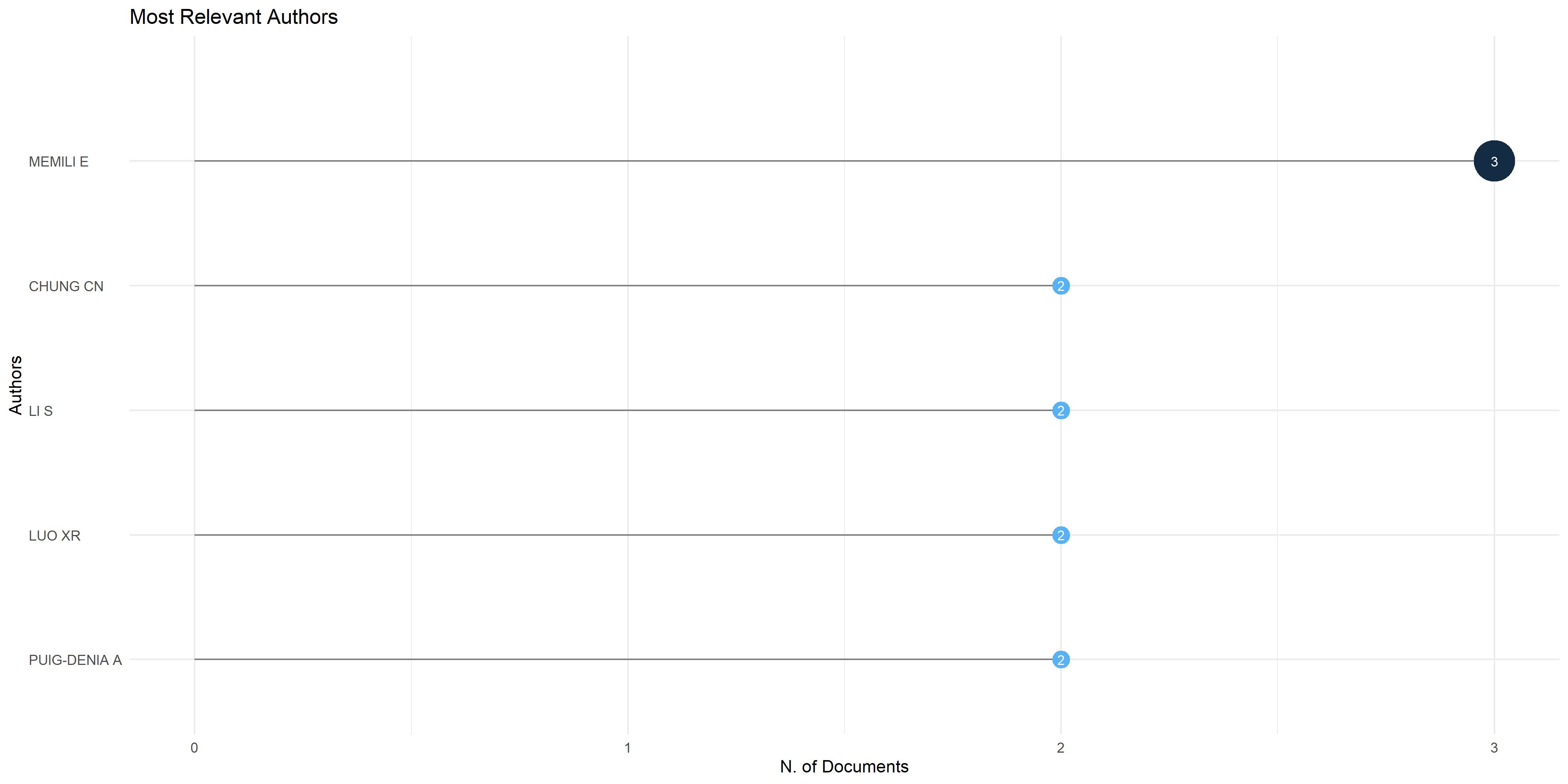 Figure 2 displays the most prominent authors regarding the study topic. It highlights that Memili has 3 published articles, while Chung, Li, Luo, and Puig-Denia each have two.