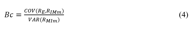 is calculated as the covariance between the company’s accounting return and the sector’s accounting return, divided by the sector’s variance (Roque et al., 2021). The structure for calculating the accounting beta coefficient is presented below in Equation 4.