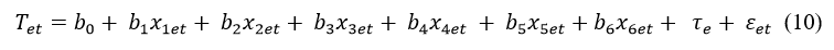 Next, the structure for calculating the Random Effects Model (REM) is presented in Equation 10.