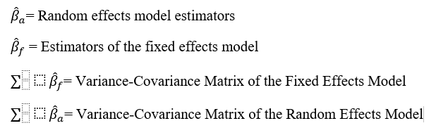 For the validation of the Hausman test, the following hypothesis tests were formulated