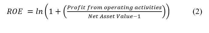 In the case of profitability, the use of return on equity (ROE) was proposed. ROE is calculated as the ratio between operating income and the equity value from the previous period, based on the perspective of excluding the effects of financing or indebtedness (if any) from the ROE measurement (Reyes et al., 2023).