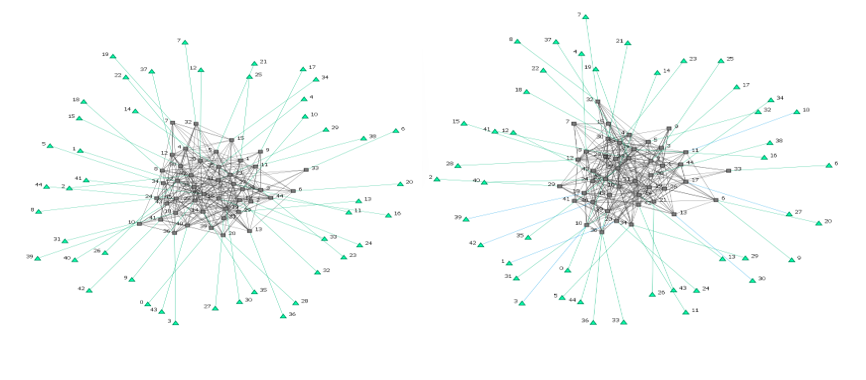 The results were validated through graphical analysis of the networks generated after the simulation. It was observed that the higher the level of linkage within the cluster, the greater the density of the network, suggesting an increase in connectivity and collaborative relationships between companies. Data management was carried out using pseudo-random numbers generated in Excel, which were subsequently incorporated into the ORA-LITE simulation software developed by the Center for Computational Analysis of Social and Organizational Systems (CASOS) at Carnegie Mellon University. This software allowed the three scenarios described above to be implemented through specific subprocesses available for dynamic network modeling.