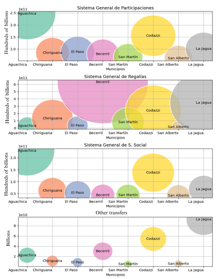 From this information, the degree of inequality in transfers and subsidies is inferred by calculating the Gini index, complemented with other descriptive statistical tools. The territorial entities included in the analysis were selected according to population criteria, prioritizing the municipalities that are part of the old mining corridor of the department, as well as those located in the south of Cesar with the largest number of inhabitants.