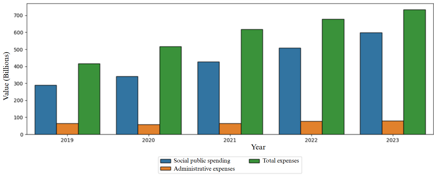 Figure 3 presents in detail the distribution of the types of expenditure in the municipalities analyzed, allowing us to observe not only the magnitude, but also the evolution and relative trend of expenditure on administration and public social expenditure throughout the period studied.